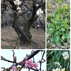 今朝の散歩より。 ↖️立派な梅の木。 幹に存在感がありました❗😃✨ ↗️植えたわけでもなさそうな菜の花が、いくつか道端に咲いていました。 ↙️河津桜でしょうか、可憐に咲いていました。😊 ↘️今あちこちで咲いている日本水仙。 頑張ろう❗日本‼️ 👊✨
