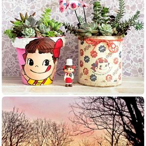 🏷️ペコちゃん祭りに参加します。😊🎶 ⬅️トワさんのペコちゃん鉢✨ ➡️さくら餅子さんのペコちゃん缶✨ ⬇️今朝の散歩より 寄せ植えが、思ったより綺麗な状態のままでした❗😄💖 頑張ろう❗日本‼️ 👊✨
