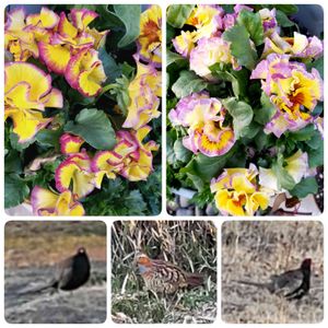 ↖️↗️パンジー ゆみラッフル2種✨ フリフリもりもり❗😄🎶 ↙️↘️散歩先のキジ達💖 今日はキジの鳴き声があちこちから聞こえました‼️😃 ⬇️コジュケイにも逢えてラッキー😆💕 頑張ろう❗日本‼️ 👊✨