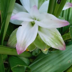 おはようございます😊 今日のお花ウコン🤍🌿 ショウガ科ウコン属の多年草 別名-キゾメグサ ウコンはインド原産のウコン属の栽培種で根茎に苦味が無く食用や薬用に💡 カレーなどインド料理の他たくあん、カラシなどの黄色の着色料として利用されるそう ①穂状花序は円柱形で長さ12~18㎝、幅4~9㎝、稔性の苞は淡緑色です🌿🤍🟢🌿 ②高さ約1mで根茎は多数分枝しオレンジ色~明るい黄色の円柱形🧡💛🧡 芳香があり先に塊茎が🫚 苞の間から小さく出てるのが、お花で淡黄色🤍💛🤍筒部は長さ3㎝以下です💛 ③葉っぱは緑色で長楕円形~楕円形、長さ30~45(~90)㎝、幅15~18㎝で無毛です ④観賞用のクルクマもウコンの仲間🌿🩷🌿 🏷️白い貴婦人✨ 🏷️木曜日は桃色 🏷️愛の花♡ ①②③小石川植物園で🏞️2024.10.11 ④仲良しのお花屋さんで💐