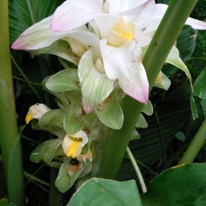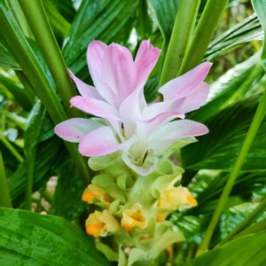 🏷️月曜日を爽やかに ウコンの花、初めて見ました✨ 優しい色で、葉も綺麗💚