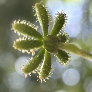 ノブキさん お花を逃したけど 下から覗いたら 玉ボケに吸い込まれそう️🫧 上から見たら花のよう❁︎ 粘る線毛が愛嬌たっぷり꒳꒳ 花後も花よりキラキラです️🫧✨️