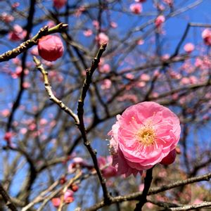 梅紅梅 今年は梅が咲くの早い。 去年は2/20頃満開だったからね。 3月初旬の梅祭りには散ってるかも。 名前はわからないけど紅色のなんとも艶っぽいことよ。