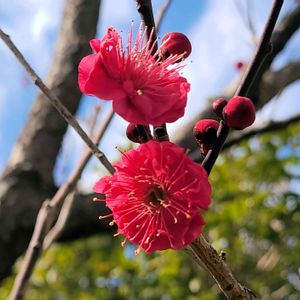 紅梅 紅梅にも濃いピンクと淡いピンクがありますね それにしてもたくさんの雄しべ 50本くらいあるらしい