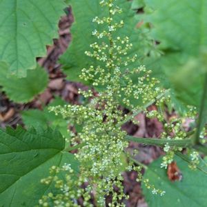 ゆっくり投稿 ② 10月8日撮影 雌雄同種を忘れていて雌花、雄花を拡大して見るのを忘れてしまい残念です ※イラクサ科イラクサ属 本州から九州の山地の木陰などに生える 茎は四角形、茎や葉に蟻酸を含む棘が多い 葉は対生、広卵形、欠刻状鋸歯有り 夏期 9~10月 茎頂部に雌花序が付き、花被片は4個で花後には2個が大きくなり花柱1個 雄花序はやや下部に付き花弁はなく萼片は4個、雄しべ4個