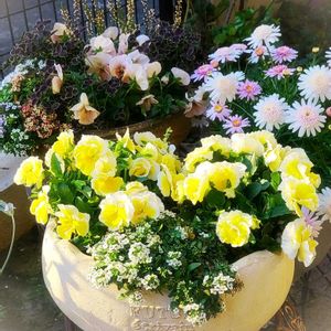 おはようございます♡ ☘️🌿🌱狭庭☘️🌿🌱 華やかになってきました~ 🌷🌱🌸🌿🌼☘️🌈 ビオラパンジーはもりもり咲いて満開を迎えてきました❣️ が、茎が伸びてすこーしお疲れモードです- ̗̀( ˘˙ࠔ˙˘) ̖́- 春夏苗にチェンジするタイミングが毎年悩ましいところ…… ナメに遭遇することも増えてきた……