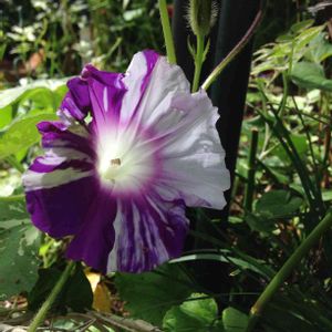 朝顔 江戸むらさき 一番花咲きました💕 ちょっとよれていますが良い絞り具合です(o^^o)