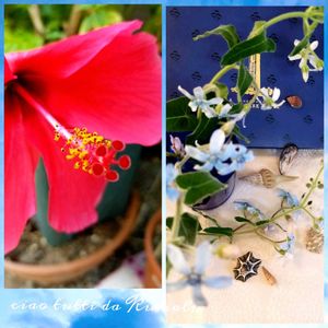 🏷夏の思い出 🏷チーム魔女っ子 もぉ8月も終わるから 宿題に取りからからなくっちゃねฅ( ・㉦・)ฅ 🐾 前に頂いた素敵な海の贈り物🐚 ずっとハイビスカス🌺とコラボしたいなぁって思ってたの。 海大好き🏖なので、貝殻拾い憧れだけど ひとつひとつ 集めてた宝物を贈ってくれた素敵なお友達に感謝 碧い🔷海と波打ち際の水しぶきを集めたような ブルースター🩵 いま フラダンスで習ってる素敵な曲の イメージです♡🧸 見ているとずっと遠くから来た🐚の物語と 人の優しさ 温かさを想います 🌺ジョリー🌺紺色と相性いいんだね。 P.s 野ぶどうは収穫前に暑さで干し葡萄になってしまいましたʕ→ᴥ←ʔ