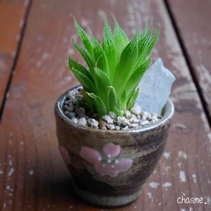 ダイソー産のハオルチアがすくすく成長してこんなに伸びてきました(*^^*) 植え替えして、ハオルチアに似合う水晶と合わせました♬ °