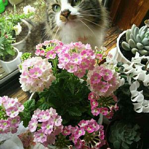 おはようございます😻 盛岡は快晴☀ 朝は寒かった〰! カランコエ・ステファニーとバーベナ・ピンクポップ🍭🍭 かわいいでしょ😘 モモちゃんも💞 今日もよろしくお願いします