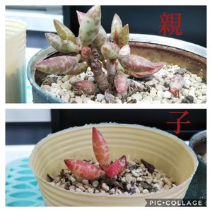 キモかわのフィリカウリスさん😊 親子でこんなにも違う😆 親はキモカワに相応しい感じで好き😊 子は緑が薄いからか赤が鮮やか💕 この子はキモカワよりも美しくて好き💕 結局はどっちも好き😍 もう2年くらいこのサイズから変わらない… 少し多いくしたいから肥料少しあげようかなぁ😊