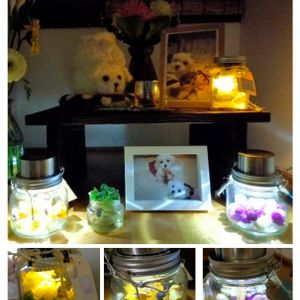 こんばんわぁ〜🤗 春はそこまで来てますねぇ〜🥰 先日…みるくが夜真っ暗の中居るのがかわいそうでGS友のlavenderさんにお願いしてソーラーライト(下の真ん中と右)を注文して今日届きました💓🍀🤗 そしたらなんと…電池式LEDライトをサプライズプレゼント🎁(下左) (*˘︶˘人)♡*。+幸せ💓 ありがとうございます🍀 今日からみるく明るくカワイイお部屋でゆっくりしてくれます🥰💞 会いに来てねぇ〜🍀🤗
