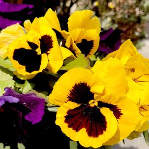 🌼 黄色と紫色のビオラさん⸝ ⸝ ⸝ 💜💜💛💜💛💜💜 ┈┈┈┈┈┈┈┈┈┈┈┈┈┈┈┈┈┈┈┈┈ 【ビオラ】 スミレ科 スミレ属 学名: Viola 開花: 9月〜翌6月 ・パンジーよりも小さい ・花の大きさ 3㎝以下 ┈┈┈┈┈┈┈┈┈┈┈┈┈┈┈┈┈┈┈┈┈ 💠 黄色いビオラの花言葉 「ささやかな幸せ」 「小さな幸福」 「つつましい幸せ」 「田園の喜び」 ┈┈┈┈┈┈┈┈┈┈┈┈┈┈┈┈┈┈┈┈┈