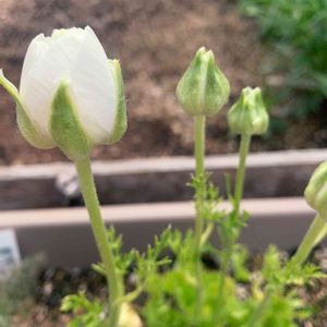 逆さまに植えていたラナンキュラス。 蕾がぐーんと伸びて、ふっくら丸くなってきました。毎日の変化にウキウキです♪ それにしても、ホワイトだったのね。 全部で5つ植えて、4つ芽が出て、3つ蕾をつけました(^^) ドライにするのが目的であれこれ植えてみたけど、花を楽しみたくなってきたなー