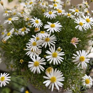 ブラキカムෆ̈ホワイティ 小さな かわいいお花がいっぱいです ①は 先日の様子 ②〜④今日は💧が たっぷり〜ᥫᩣ ̖́- 🏷️0の付く日は雨粒の日