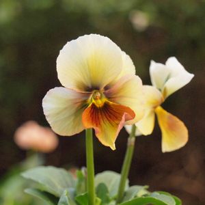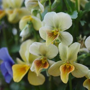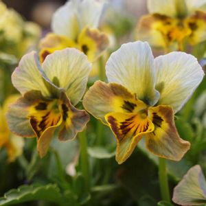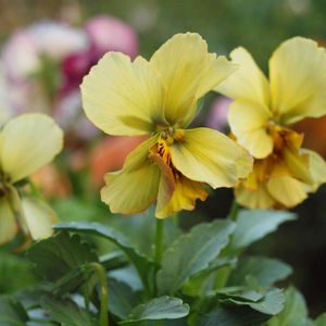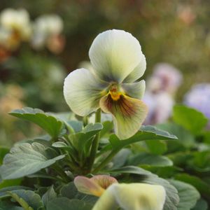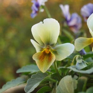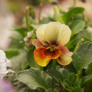 黄色に薄くグリーンがのったようないい色で咲いています。八重で咲いたり、ビオラには見えない咲き方。だからかお店では売れ残っていたけれど、こういうのが好きな私にとっては出会えてラッキー💕