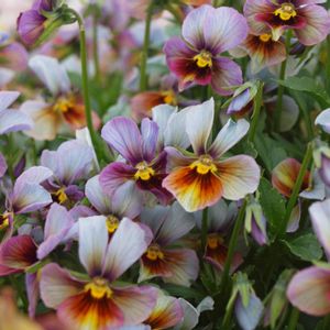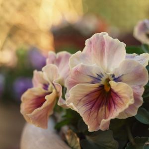 先程のプリムラはぴったり同じラベンダー色のビオラと寄せ植えています。