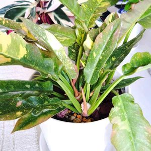 こんばんは✨ 昨日、お出迎えしました フィロデンドロン・ リングオブファイヤ🔥 ネーミングが、カッコよすぎ🤩 高校当時に流行っていた パラパラの曲みたいな名前(笑) 葉っぱのカタチと斑入りが最高にいいですね👍