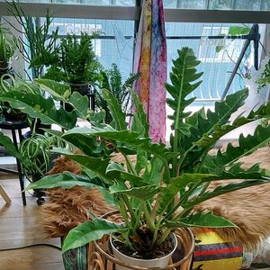 ■プラントハント収穫報告🔫 またポチッてしまいました。オブリクア エクスピラータとラニアータ、何が違うのか。4点植え替えも完了です。 ・Monstera adansonii var. laniata モンステラ ラニアータ ・Philodendron 'Ring of Fire' フィロデンドロン リングオブファイア ・Philodendron billietiae フィロデンドロン ビレッタエ ブラック ・Philodendron 'Tango' フィロデンドロン タンゴ 最高気温35℃、最低気温27℃ Q.モンステラ ラニアータについて教えて A.Monstera adansonii var. laniata(モンステラ・アダンソニー・ラニアタ)は、マドカズラとして知られるMonstera adansonii(モンステラ・アダンソニー)の変種です。 特徴 葉の形状と光沢: 通常のアダンソニーよりも葉が大きくて細長く、滑らかな縁の穴(窓)が開いているのが特徴です。また、葉の表面はより深い緑色で、光沢があることが多いです。 成長パターン: つる性で、気根を伸ばしながら成長します。支柱を立てて這わせると、葉が大きく、見ごたえのある姿になります。ハンギングバスケットで垂らして育てることもできます。 別名: "Swiss Cheese Plant"(スイスチーズプラント)とも呼ばれます。また、Monstera friedrichsthalii(モンステラ・フリードリヒスターリー)という学名で呼ばれることもあります。 育て方のポイント 置き場所と光: 明るい間接光を好みます。直射日光は葉焼けの原因になるため避けてください。北向きや、遮光した東向きの窓辺などが理想的です。 水やり: 土の表面が乾いたら、たっぷりと水を与えます。特に春から秋の成長期は、水切れに注意が必要です。冬は成長が緩やかになるため、やや乾燥気味に管理します。根腐れを防ぐために、過湿には注意しましょう。 湿度: 高い湿度を好むため、定期的に葉水を与えるのが効果的です。特にエアコンなどで空気が乾燥する時期には重要です。 温度: 暖かく、18℃〜29℃程度の環境でよく育ちます。寒さに弱いため、冬は室内の暖かい場所で管理し、10℃以下にならないように注意が必要です。 用土: 水はけのよい用土を好みます。ピートモスやパーライト、蘭用の樹皮などを混ぜた土が適しています。 植え替え: 生育旺盛なため、根が鉢に回ってきたら、春から夏にかけて一回り大きな鉢に植え替えると良いでしょう。