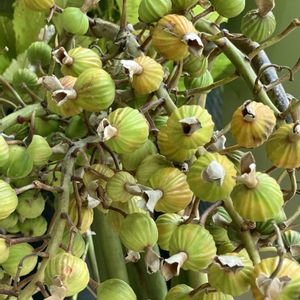 ■Dovyalis abyssinica🫐🍎 ・アビシニアングーズベリー(ラブリーアップル) 四條畷イオンのリコシェで発見。「Interior Plants」の札だったので、三浦園芸さん産です。三浦園芸さんの商品は間違いないです。 最高気温12℃、最低気温2℃ 〜AIに聞いてみました〜 Q.アビシニアングーズベリーについて教えて アビシニアングーズベリーは、その見た目と名前からグーズベリーの一種と思われがちですが、実は別の植物です。 ・学名と科名 * 学名: Dovyalis abyssinica * 科名: ヤナギ科 ・原産地 アフリカ北東部が原産です。 ・特徴 * 見た目: 小さなトマトのような丸い実をつけ、黄色やオレンジ色に熟します。 * 味: 甘酸っぱく、生食もできます。ジャムや果実酒など、様々な加工品にも利用されます。 * 耐寒性: 比較的耐寒性があり、日本の気候でも栽培可能です。 * その他: 葉は斑入り品種もあり、観葉植物としても楽しめます。 ・栽培 * 日当たり: 日当たりを好みますが、半日陰でも育ちます。 * 水やり: 乾燥気味を好みます。 * 肥料: 肥料は控えめにする方が実付きが良いと言われています。 その他 * 別名: ラブリーアップルと呼ばれることもあります。 * 用途: 果実だけでなく、葉や根も薬用として利用されることがあります。 ・注意点 * トゲ: 枝にトゲがあるので、取り扱いには注意が必要です。 ・まとめ アビシニアングーズベリーは、可愛らしい見た目と爽やかな酸味が特徴の果樹です。育てやすいので、家庭菜園にもおすすめです。