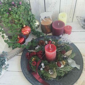 古いタルト型に並べるだけのリース。 小さいものや茎が折れたものを 並べて飾りました。 手軽に作り変えられて楽しいです(’-’*)♪