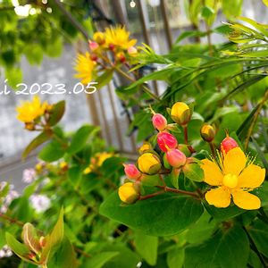 今日は2枚アップします😄✨ 地植えで放置の"ヒペリカム" 狭いスペースなので毎年適当に剪定してますけど、よく咲きます ピカピカの実が可愛いよね😍😍😍