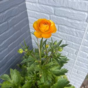 ラナンキュラスラックス ミネルバが開花🌼ツヤツヤ〜✨ 蕾もたくさん出てきて楽しみすぎる。
