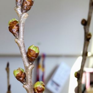 1⃣サクランボの花芽…。 数本飾ってありました。 🎼•🌸¸♬. 咲くのはなかなかでしょうね〜? 持ってこられた方、広いお庭に大きなサクランボの木があるとか〜、。🎼•🌸¸♬.🎶 花が咲いたら持ってくるよ、って言われたので皆さんで頂いて帰りました。 温かいところに飾りました〜。 🎼•🌸¸♬.🎶🌸*•¸♬🎶•🌸*♪🎼.•*