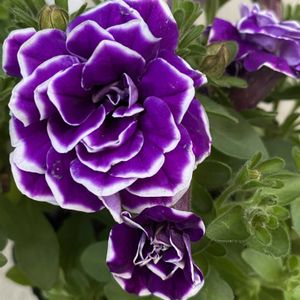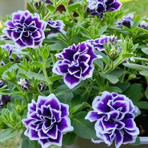 強風や雨で少し観察怠ってたら いつの間にか 咲き進んでて焦ります💦 ①②③ ペチュニア 花衣 瑠璃静 エム・アンド・ビー・フローラさんの 八重咲ペチュニア💓 ぎゅぎゅぎゅっと咲いてます いつ どこで 切戻しなのか悩む😨