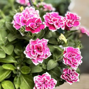 ペチュニア花衣 愛染 お迎えしました💕 八重咲覆輪種で、とっても綺麗です😊 ペチュニアやサフィニアをもりもり咲かせている方、尊敬🫡します いつも切り戻しのタイミングが分からず、なかなかもりもり咲かせられないんですが、花衣一輪一輪、とっても綺麗なのでたくさん咲かせられるよう、頑張ります😉 サフィニアももいろハート🩷もお迎えしました😊