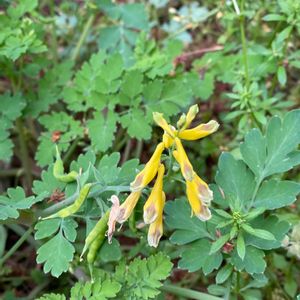 ケマン2種 キケマンとムラサキケマンソウ こぼれ種で咲いてます〜💛💜💕