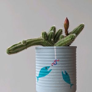 昨年の4月にトロピさんからお迎えしたike soul錦の綴化 横長のカンカンに植えてたけど キツくなってきて、植え方悪かったこともあり葉っぱが伸びると缶の淵に当たってしまい窮屈そうだったので、自作リメ鉢に植え替えました😆 ムーミン80周年のペーパーナプキン、家族で釣りに向かうデザインが大好きで、久しぶりにデコパージュ 細かいこと気にしなければ ざっくりと良い感じ😅 お迎え時のGS写真と比較すると ずいぶん大きくなったのねー😳