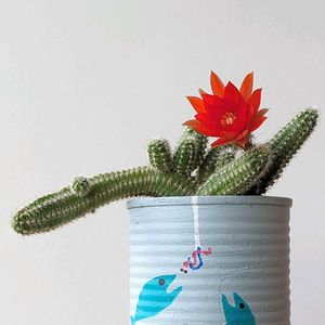 自作リメ缶の白檀さん あまりにも自由なお姿(笑) 最近、なんかへんちくりんな出っ張りがあるなって思ってたけど これは蕾かもせれません👀💞