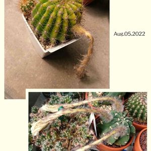 金盛丸と刺無短毛丸🌵 昨日8/5の写真。 8/2の深夜から旅行のため 車で出かけ、 昨日8/5の朝方に 帰って来たら… すでに咲いて、 すでにしぼんでた…((T_T))