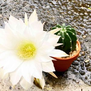 ˗ˏˋ🤍刺無短毛丸 🤍ˎˊ˗ 昨日のにゅ〜んと伸びた花芽から✨ やったぁ‼︎ *゚✲ฺ٩(ˊᗜˋ*)و ✲゚ฺ* 開花しましたぁ✨ 白い花🤍とっても綺麗⿻( ૣᵕ◡ᵕ ૣ )✨ シボシボ💦酷暑☀️乗り越えて🤍咲いてくれて✨ありがとう(*´╰╯`๓)嬉 💖