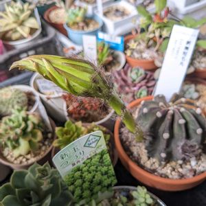 気になる店には2度足運ぶ👣 美容室の帰りに絶対行くと決めていた😃 多肉植物や観葉植物も売っている よかもん市というお店。 サボテンも何種類もあって… 観葉植物は季節的なものか… 葉が枯れていたり… 最近サボテンが気になって🌵 幸運ランポーの上部が色が着くところが見てみたくて☺️ ダイソーで見つけたサボテン🌵 金晃丸。 このフォルムが可愛いくて😍 花が咲くのが楽しみ😊 そして、多肉の集いに参加😎