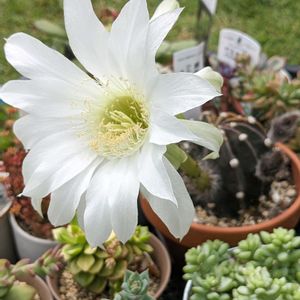 エキノプシス属 短毛丸💕 昨夜、咲いた短毛丸。 今朝、AM8時少し前の様子です。 萎まないで まだしっかり咲いていました♡ 嬉しい〜(*^o^*) 夜の暗闇の中での神秘的な雰囲気はないけど 毎年、何回咲いても、何度見ても きれいです(*^o^*)