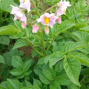 今日は🥔の日? ①ジャガイモの花(農園かな) ②はカルビーポテトバッグで咲いたぽろしりの花 芋は美味しかったけど、大きさはイマイチだったなあ🥔