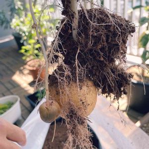 ポテトバッグの土にて育てていたじゃがいも 思い返せば結構前(8月?7月?辺りに)葉が枯れていきました。 これは日差しが強くて気温も暑すぎたか!?と思い家の裏へお連れしました。 一向に新しい葉も生えず、収穫しないうちに終わったな…😭 そう思っていたら、Bookmarkからもっと早い時期に収穫だとお聞きしまして、掘ることに致しました。 ✄ハサミでチョキチョキ切り込みを入れ、逆さまにしてバンバンバンバンッ 少し土がこぼれ落ち小さなじゃがいもを発見! 〜 次に続く 〜