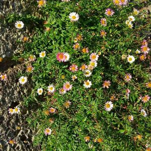 石垣に生えた小菊(^_^)v 四季咲きのようで、刈り込みしてもすぐに咲いています。