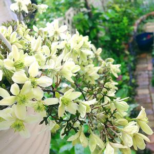 蕾付きで最近ゲットした小さな花のクレマチス😊 開花しました! やっぱりグリーンっぽい花って好き💕 覚書 木立性の常緑クレマチス ニュージーランド原産 生育温度 マイナス5度〜30度 日当たりよく水はけの良い場所を好む 肥料は少なめ 弱剪定