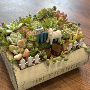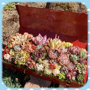 やっと出番が‼️ 昨年の春に作った大きめの寄せ植えを解体し、秋にゲットした道具箱にや〜〜っと底穴をあけて仕立て直ししました☀️ 6〜7割根付き🙂憧れの道具箱寄せ✨ひたすら突め込むだけ💦可愛い色味ももう少し楽しめるかな⁈ちゃんと水遣りしてカリカリにしないように管理頑張りた〜い(๑•̀ㅂ•́)و✧シャ~