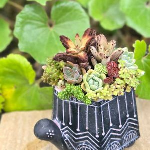 先日寄せたものを再度寄せ直し〜 自分的に何となくしっくりきていなかったので再挑戦⭐︎ フェイクを外し ハートカズラを追加して 動きを出してこれで良し☺︎ 寄せ植えしてる時間は 余計な事考えなくていいから 幸せだね😉