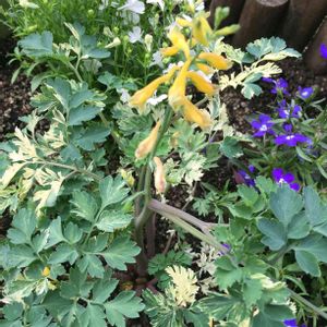 この草 キケマン草 綺麗なお花🌼咲いたの 以前 山で見つけて連れて帰ってプランターに植えてあるの🍀🌳😊