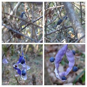 今日は可愛い青いものに出会えました ①この冬初めてのルリビタキ しばらく枝にいたのにピント、イマイチ ②ノササゲの実 見事に青々してました
