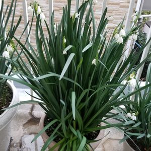 「スノーフレーク」 「オオマツユキソウ」「スズランスイセン」 ベランダの鉢に水遣りしていたら、一昨年の11月頃に植え昨年は咲かなかったスノーフレークが咲いていました。 何時も見るスノーフレークよりも背丈が低いです。 小柄な子です。 可愛い🎶