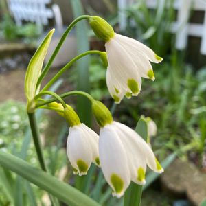 スノーフレークのお花が、今年も咲きました~✨小さくて白に、グリーンのアクセントが、たまらなく可愛らしいですねぇ~✨💓💚💓💚💓🎵
