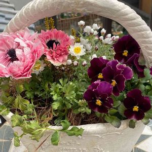 こんにちは〜💕 先日、初ベラボンで植えこんだ、 お花たち。 皆、元気です。 アネモネ クラシカルピンク💕 ピンク色が濃くなって沢山の 花びらで、ふっくら〜🥰 花かんざしも少しずつ咲きだして。 ワインカラーのビオラも美味しそう🍷