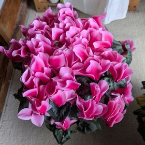 一昨年前の冬に、いただいて楽しんだシクラメンが、今頃になって勢いよく咲いてます。