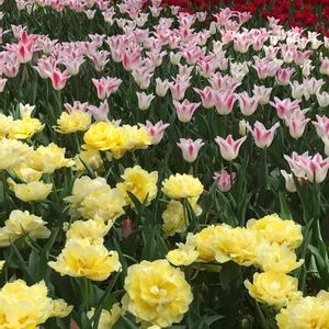 兵庫県立フラワーセンター🌷 早咲きチューリップのまとめ チャンピオンシップ(左上) バッキンガム(右上) ガンダーズラプソディ(右中) アヴァンガード(左下) レーザーゲーム(下中央) コンサート(右下)